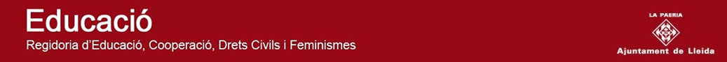 Regidoria d’Educació, Cooperació, Drets Civils i FeminismesAjuntament de LleidaC/ Bisbe Torres, 2 · 25002 LleidaTelèfon: 973 700 618 Fax: 973 700 619e-mail: educacio@paeria.cat